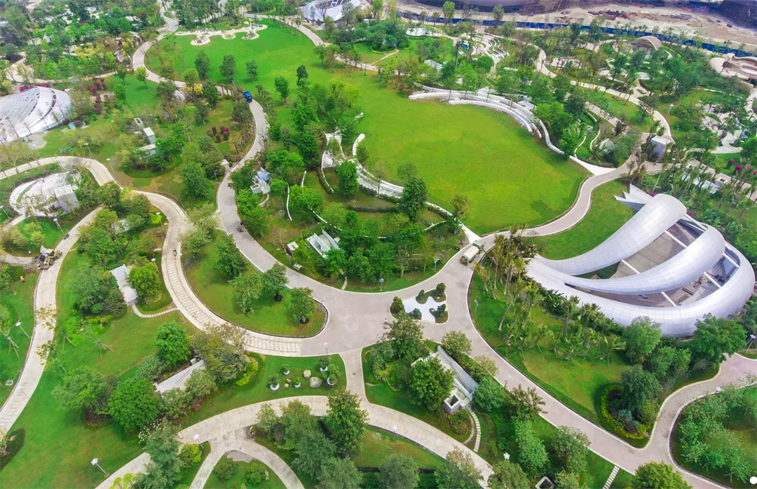 【中央公园】:涵盖观光塔、中心表演场、时尚秀场、生态剧场、欧式风情大草坪、儿童游乐天地、休闲运动天地等主题区域,与周边各区域景观行程一个复合生态网络。