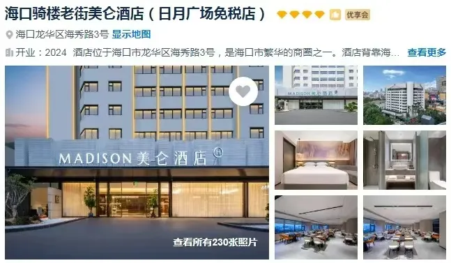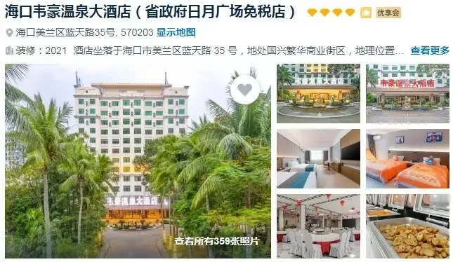 海口美仑酒店、韦豪酒店、天艺东环大酒店或同级