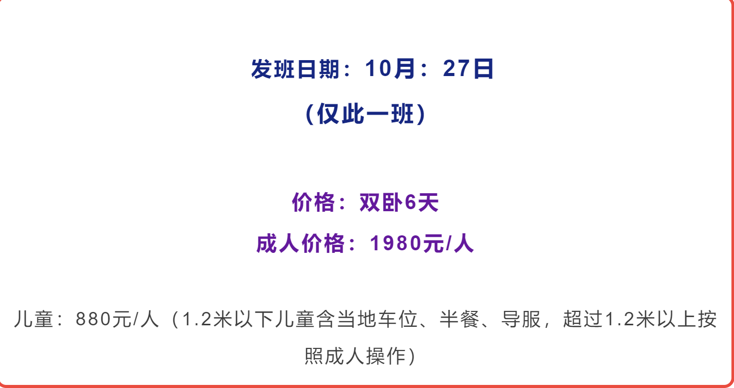 (行程门票报价为旅行社优惠套票政策报价,所有景区门票属于景区和政府补贴政策支持,已是旅行社折扣门票,持老年证、军官证、学生证等任何优惠证件的人群均不再享受门票优惠,自愿放弃以上项目不退任何费用)
