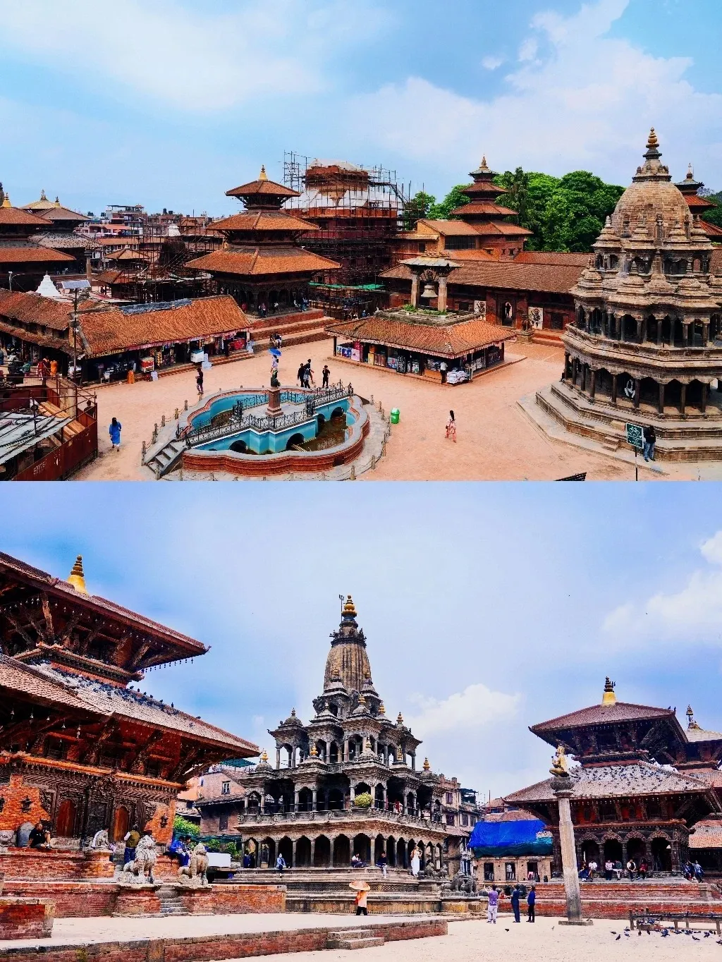 早餐后前往【帕坦杜巴广场】,广场呈长方形,东边是皇宫,塔莱珠女神庙、金庙、曼嘉喷水池等,西边则是造型各 异的庙宇,其中最为著名的是黑天神庙、黑天寺、哈里桑卡神庙、毗湿奴神庙、毗斯瓦纳特神庙等。其建筑艺术也非常高超、精湛,在世界建筑史上占有一席之地,被称为"露天的博物馆"。游览始建于2000多年前的世界上最辉煌的佛教寺庙【斯旺那布庙】(世界文化遗产,俗称“猴山”)(约 1.5 小时),来这里祭祀的有尼佤尔尼姑、藏族喇嘛、佛教及印度教之贵族朝圣者,也许斯旺那布塔是观察尼泊 尔各个宗教融洽相处的最佳地方。整体建筑古朴味道十分浓郁,民房的窗饰极其繁复,寺庙建筑的细部一样精细。 寺庙、佛塔、铜饰等组合在一起,再加上成群的鸽子飞来飞去,成群的猴子蹦来蹦去,形成独特的景观。