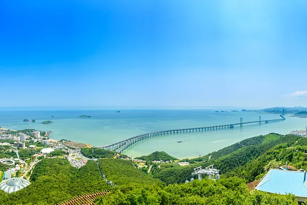 ■【感受行走的大连乘车游览大连星海湾跨海大桥】星海湾大桥是中国国内首座海上建造锚碇的大跨度双层悬索桥,建成后成为星海湾一个新的旅游景点以及大连市新的地标式建筑。