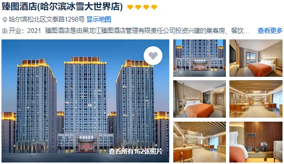 哈尔滨(4钻):臻图酒店(哈尔滨冰雪大世界店)、傲雪四季酒店(融创乐园冰雪大世界店)、哈尔滨景辰酒店(冰雪大世界店)或同级