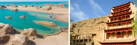 后游沙漠奇观【鸣沙山、月牙泉】(参观2小时)是国家认证的5A级景区,历来以“山泉共处,沙泉共生”的奇景闻名于世,是游客最喜欢的敦煌打卡点之一。在这里,你可以看日出日落,也可以听驼铃悠扬;可以在温柔的沙海里,静默地放空;也可以从高耸的沙山顶上,奔跑而下,体验一把久违的自由。风景优美,妙趣横生,说起来,这个地方,是无愧于人们对她的钟爱与追捧。