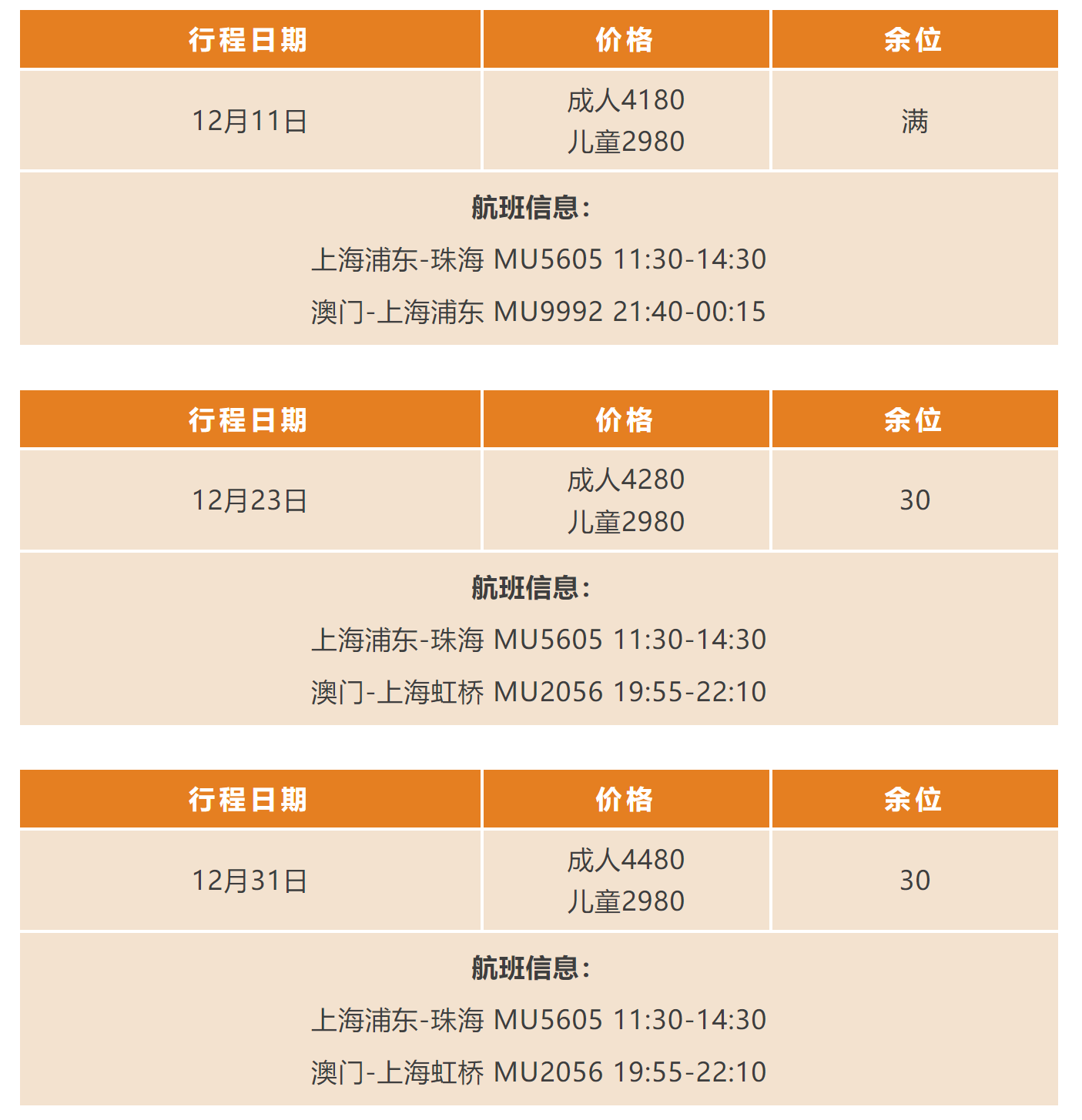 用餐:含7早(香港澳门早餐是外出围早)8正餐,其中升级6大特色餐。不占床不含早(因为是打包优惠价,不用餐费用不退)