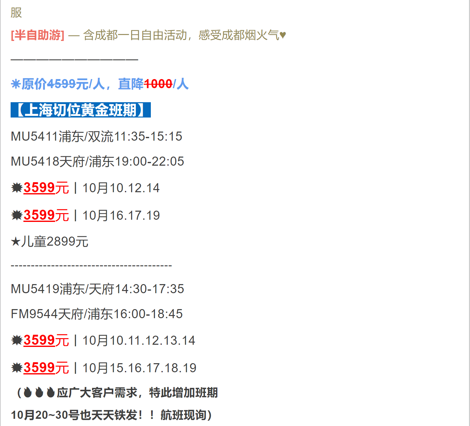 上海-绵阳/成都往返经济舱含税,团队机票一经出票不退不改不签,退改全损,去程不用回程也不可以使用。因游客原因取消退票,相关手续费损失,由游客自行承担;因不可抗力原因导致飞机延误或取消,产生额外食宿,由游客自行承担。