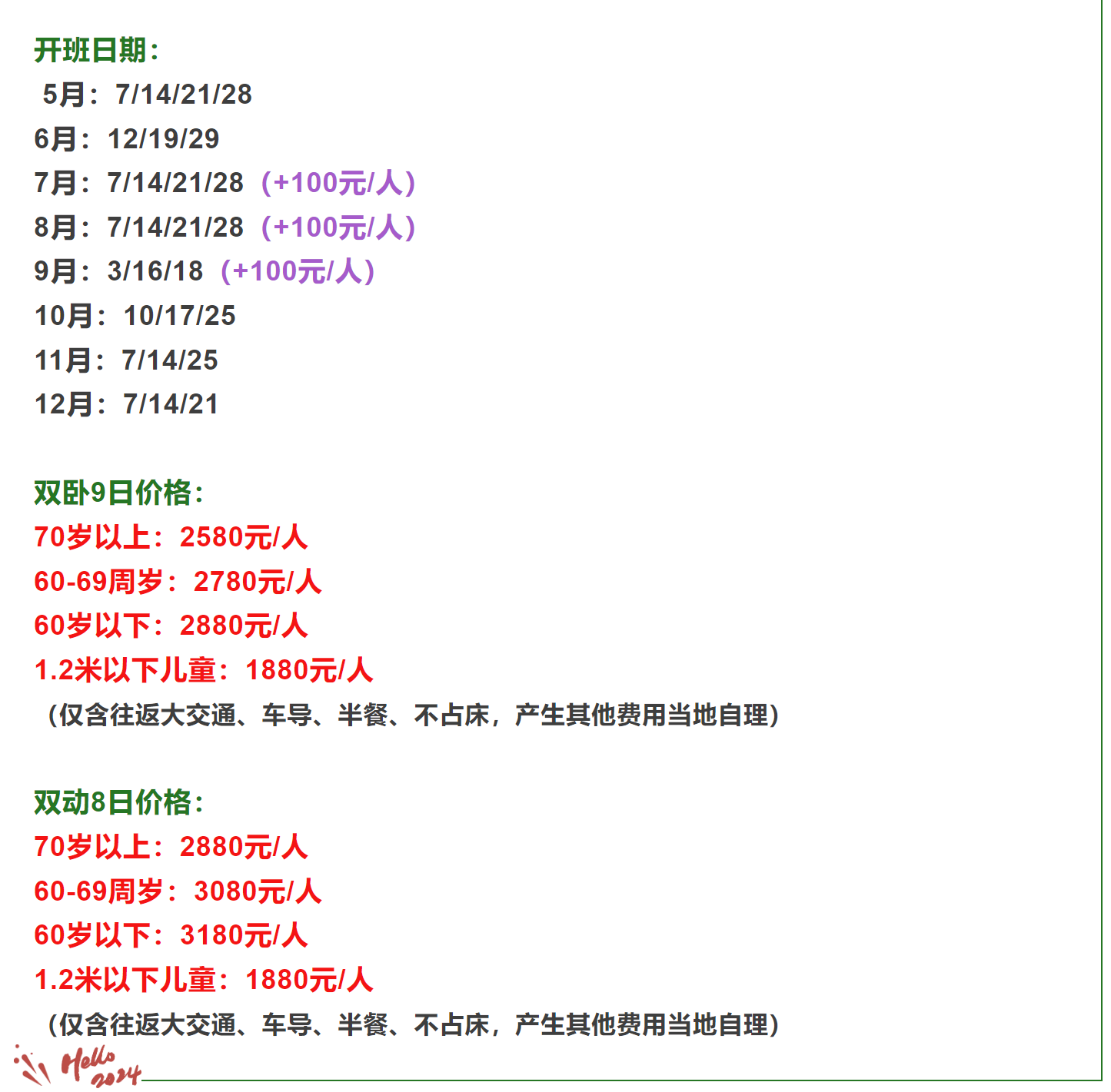 4、旅游期间遇到特殊情况如交通,天气等旅行社认为不可控原因,本公司有权增减或更改某些行程和旅游项目。
