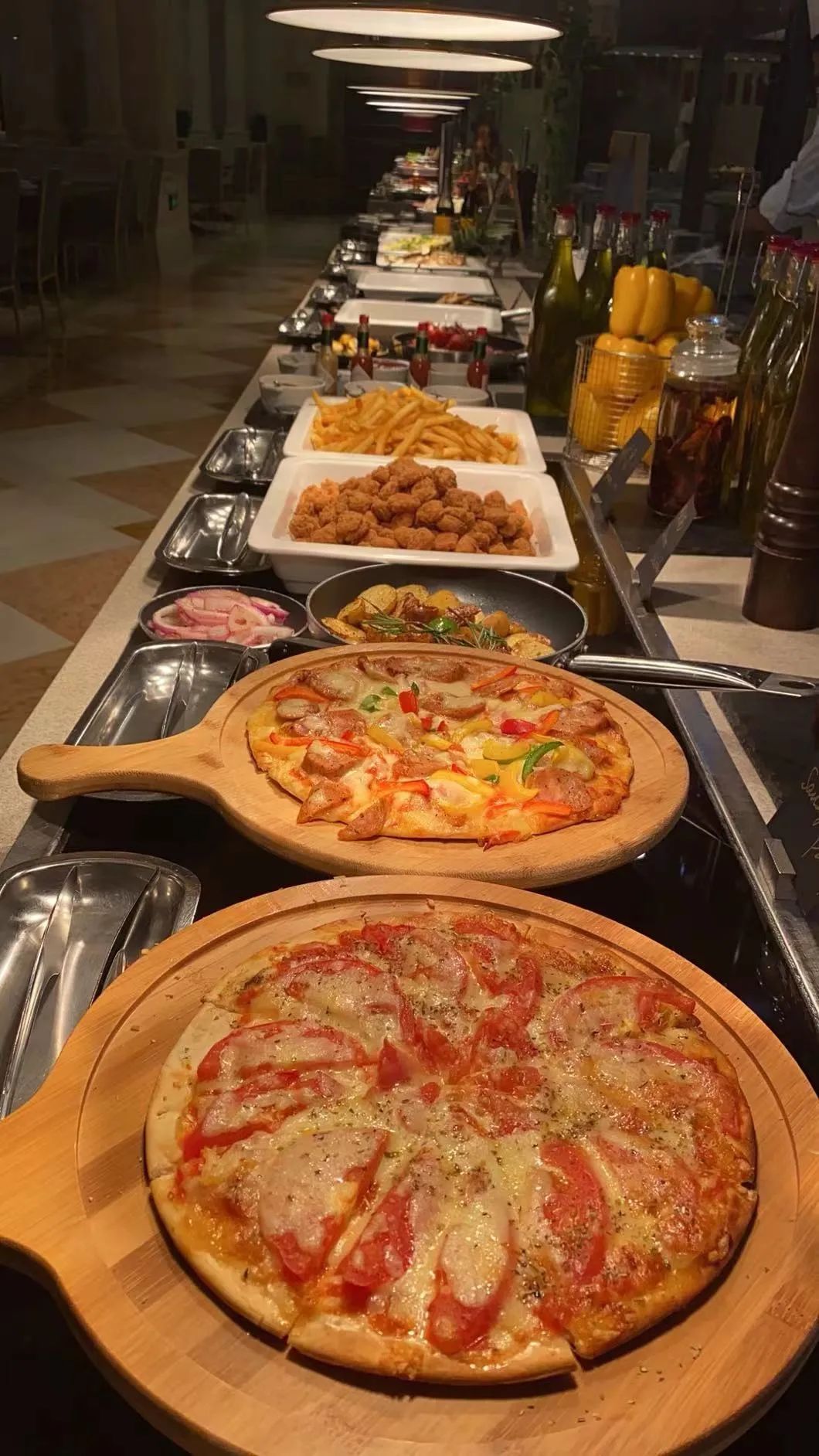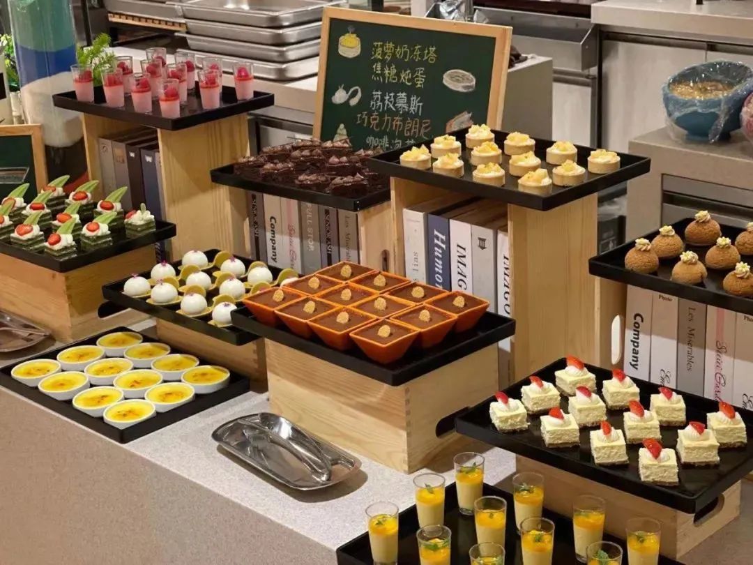 金枪鱼、三文鱼等多种刺身拼盘吃到嗨,多种海鲜美味琳琅满目,烧烤档惊艳你的味蕾。更有多种中西式热菜、沙拉台、面档等,以及深受小朋友们喜爱的甜品档,口味与颜值兼备。