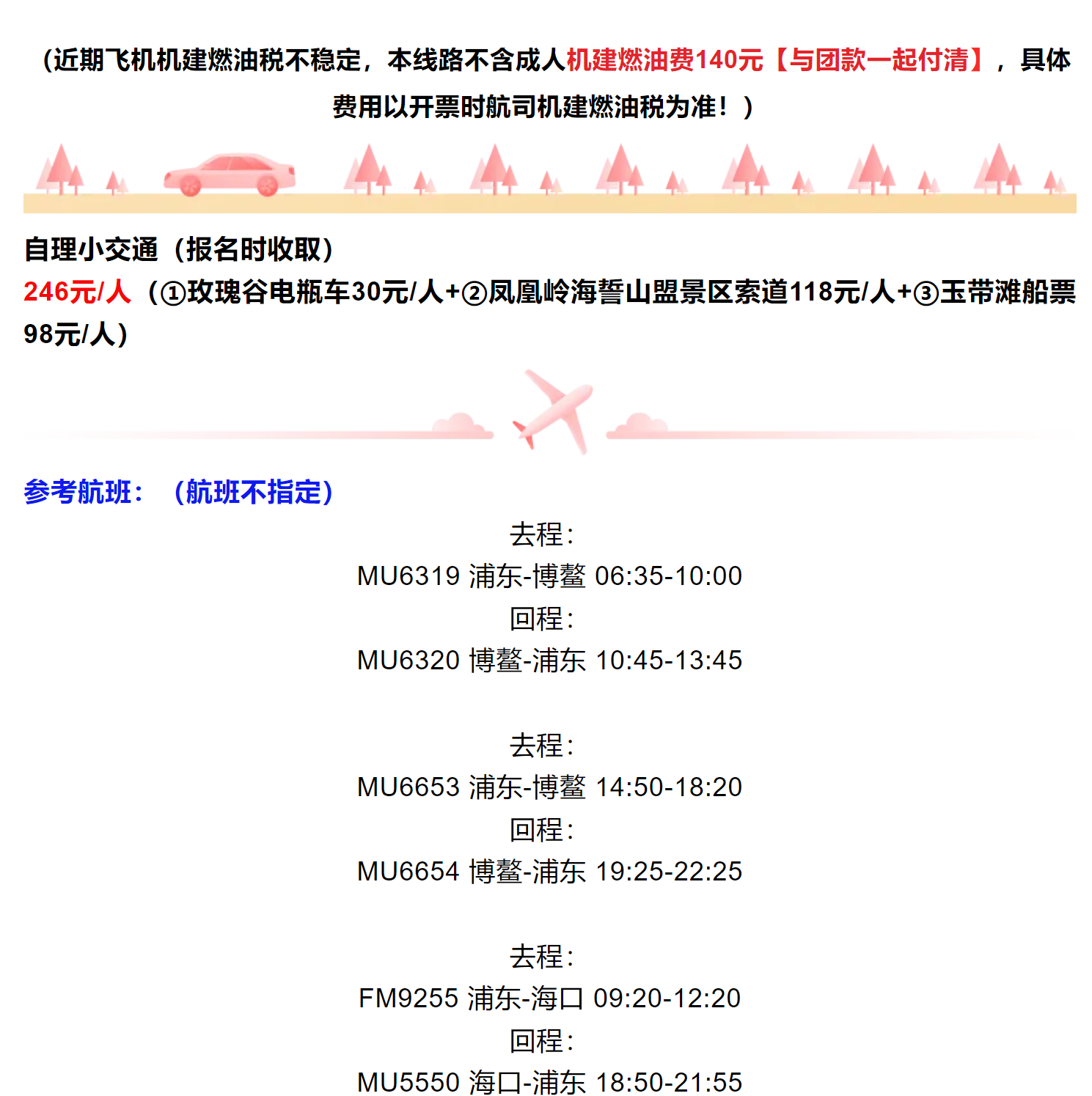(以上为景区交通,非夜间自费娱项目价格参考,实际执行 价格以运营商公布为准;“白天晚上均不推荐自费景点及夜间自费娱乐承诺”不适用于潜水、摩托艇等岛上娱乐项目。