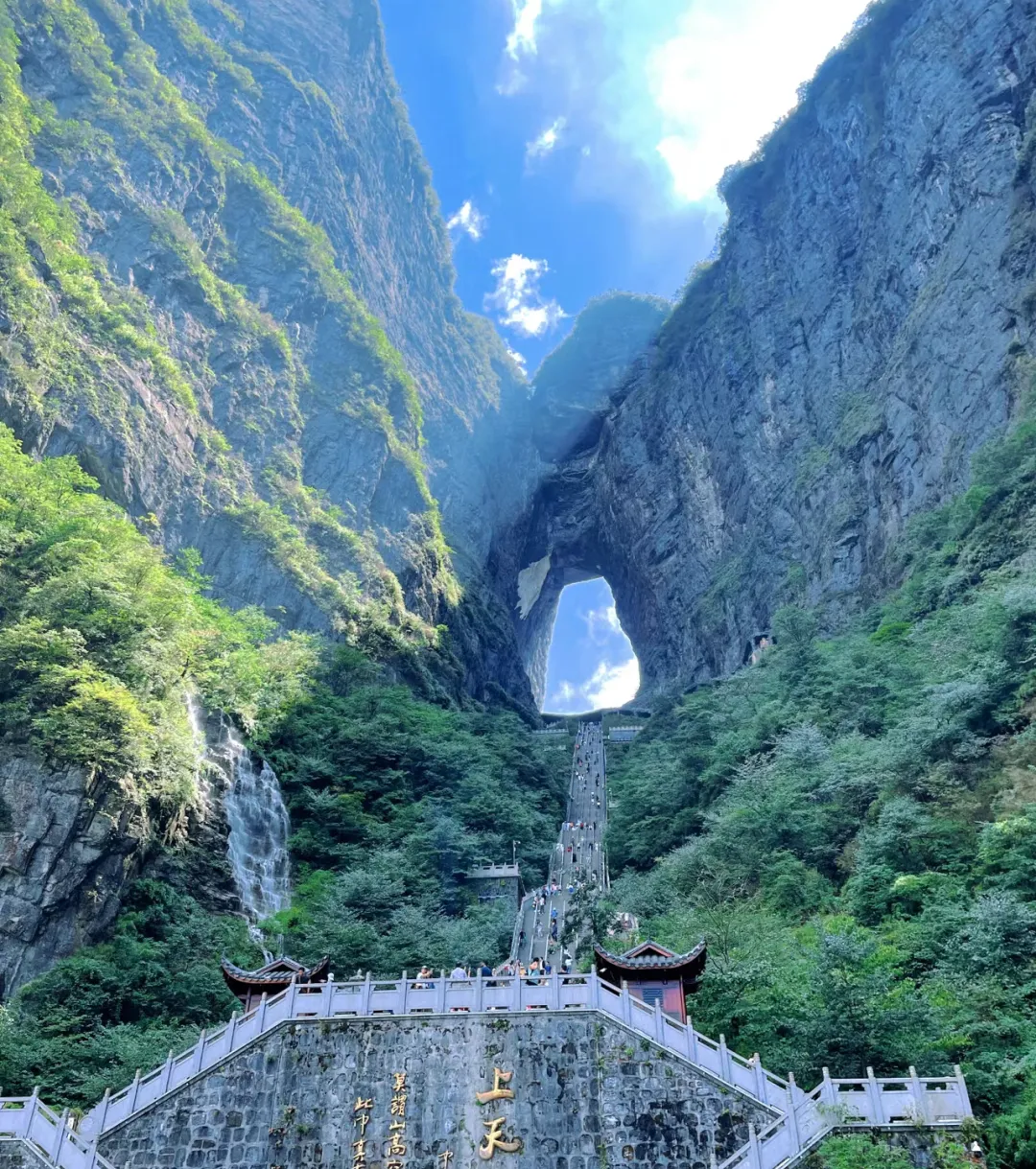 1、天门洞有穿山扶梯32/人,您可根据自身体力选择乘坐(费用32/人自理)