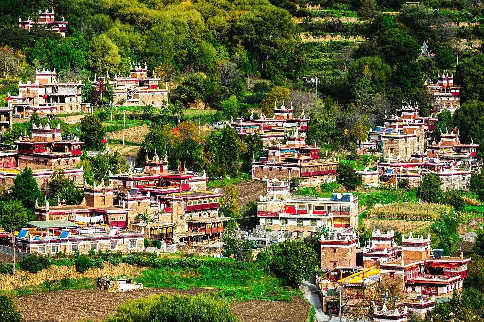成片的藏寨与彩色房子