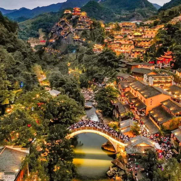 网红望仙谷 日游+夜游 江西上饶有一个建在悬崖上的村落,…
