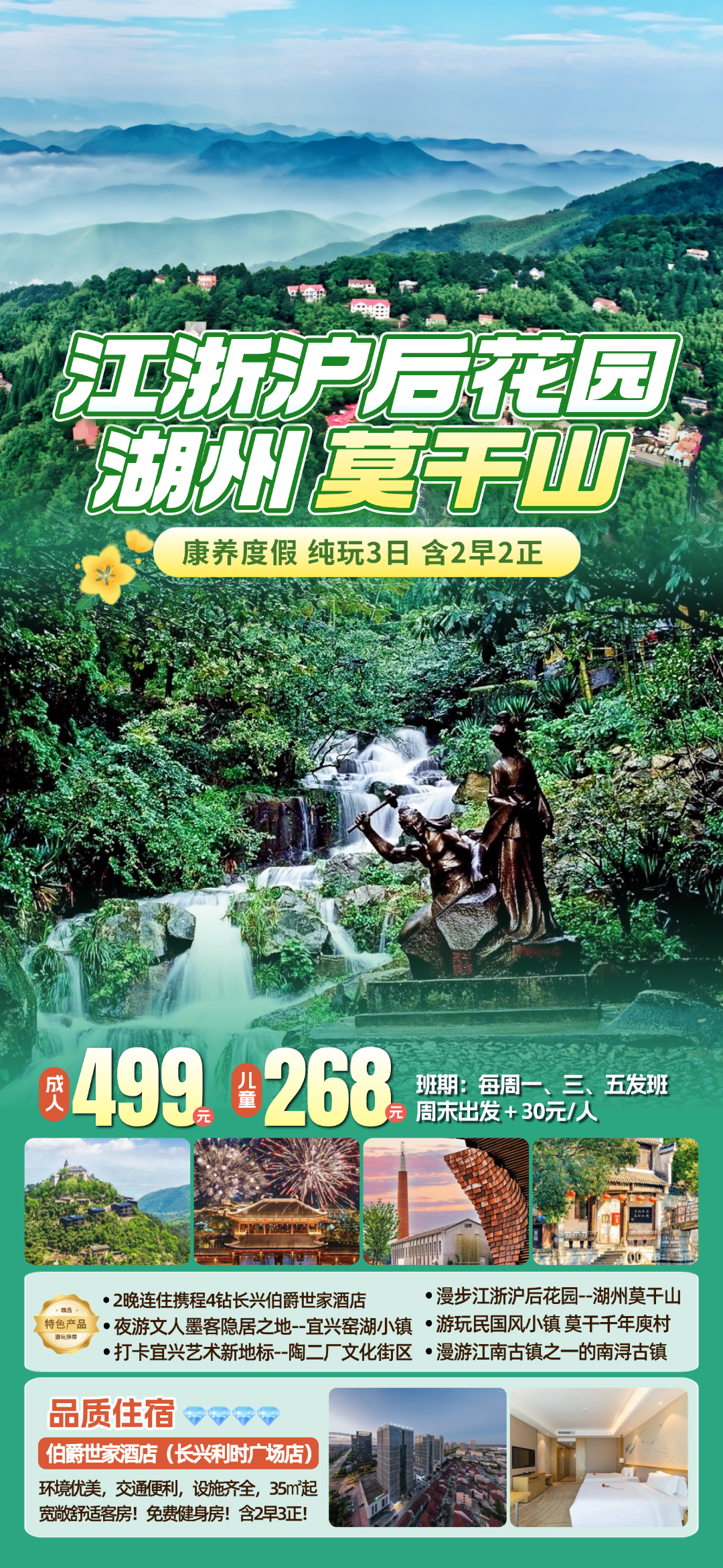 行程亮点抢先看 【一路繁花】湖州德清纯玩四日 游”江南第一山…