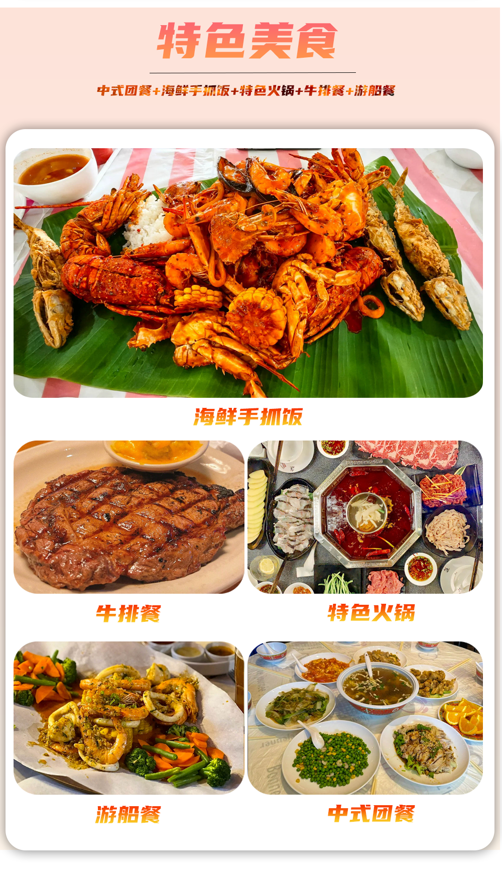 行程亮点 纯玩0购物0自费 品味美食: 安排海上享用游船特色…